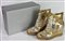 Sneakers con zeppa interna e cerniera laterale. Interni dorati e decorate all’esterno con inserti metallizzati. Con scatola originale. Manca indicazione di taglia, vestono un 37 IT. Prodotte in Italia. Ben conservate.