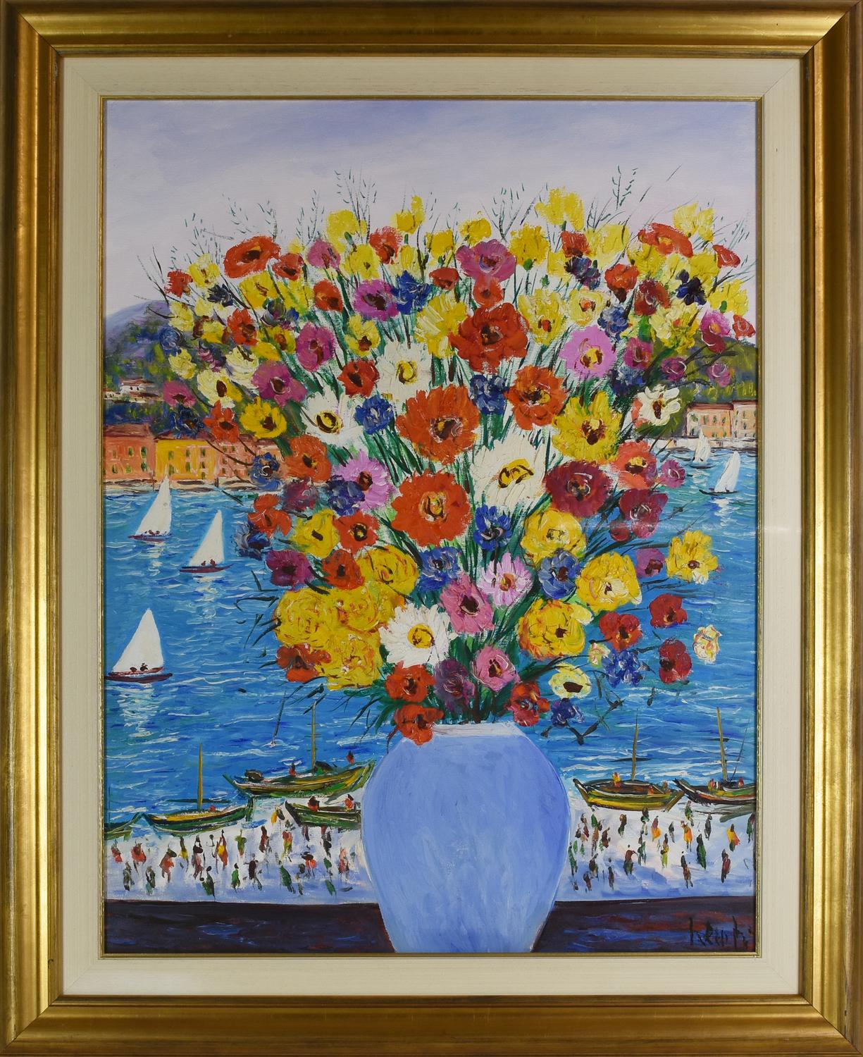 Antonio Ialenti FIORI A PORTOFINO olio su tela, cm 80x60 firma sul retro:...