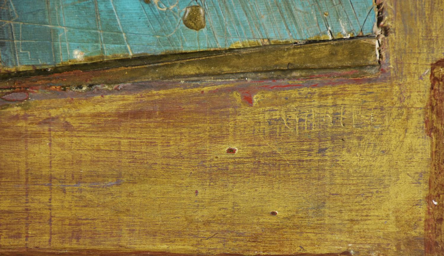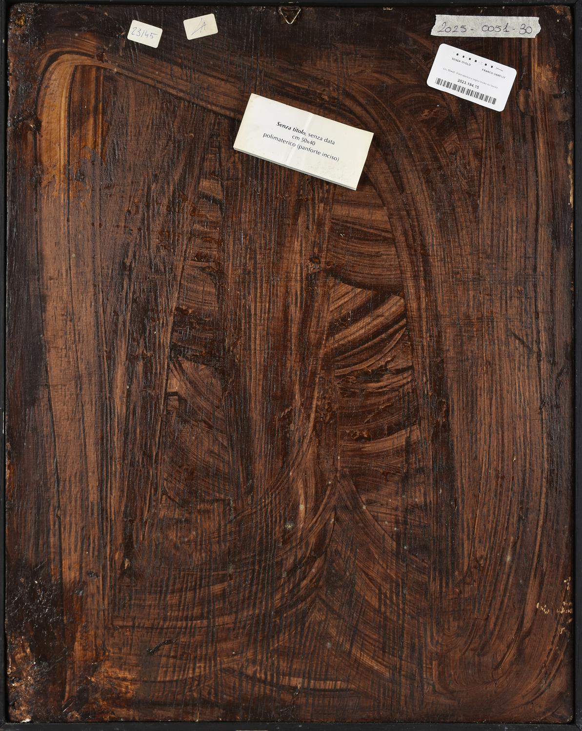 Franco Garelli SENZA TITOLO polimaterico e legno inciso, cm 50x40 firma incisa