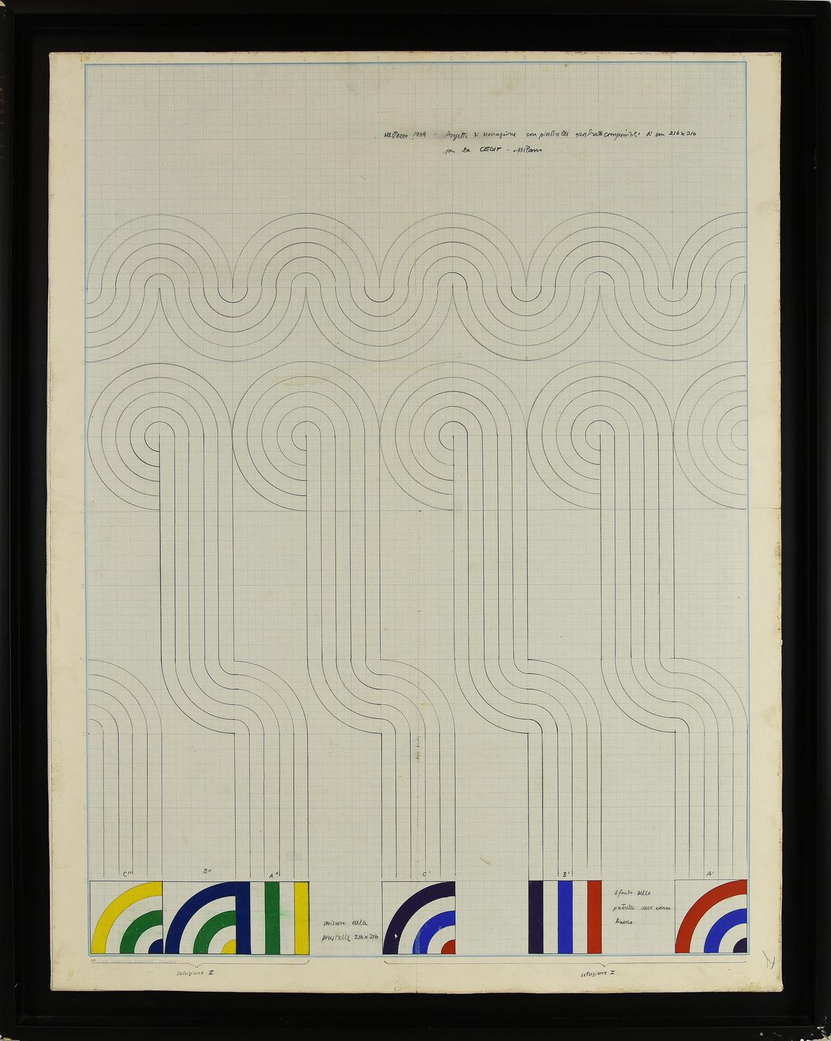 Lucio Del Pezzo (1933 - 2020) PROGETTO DI DECORAZIONE CON PIASTRELLE QUADRATE...