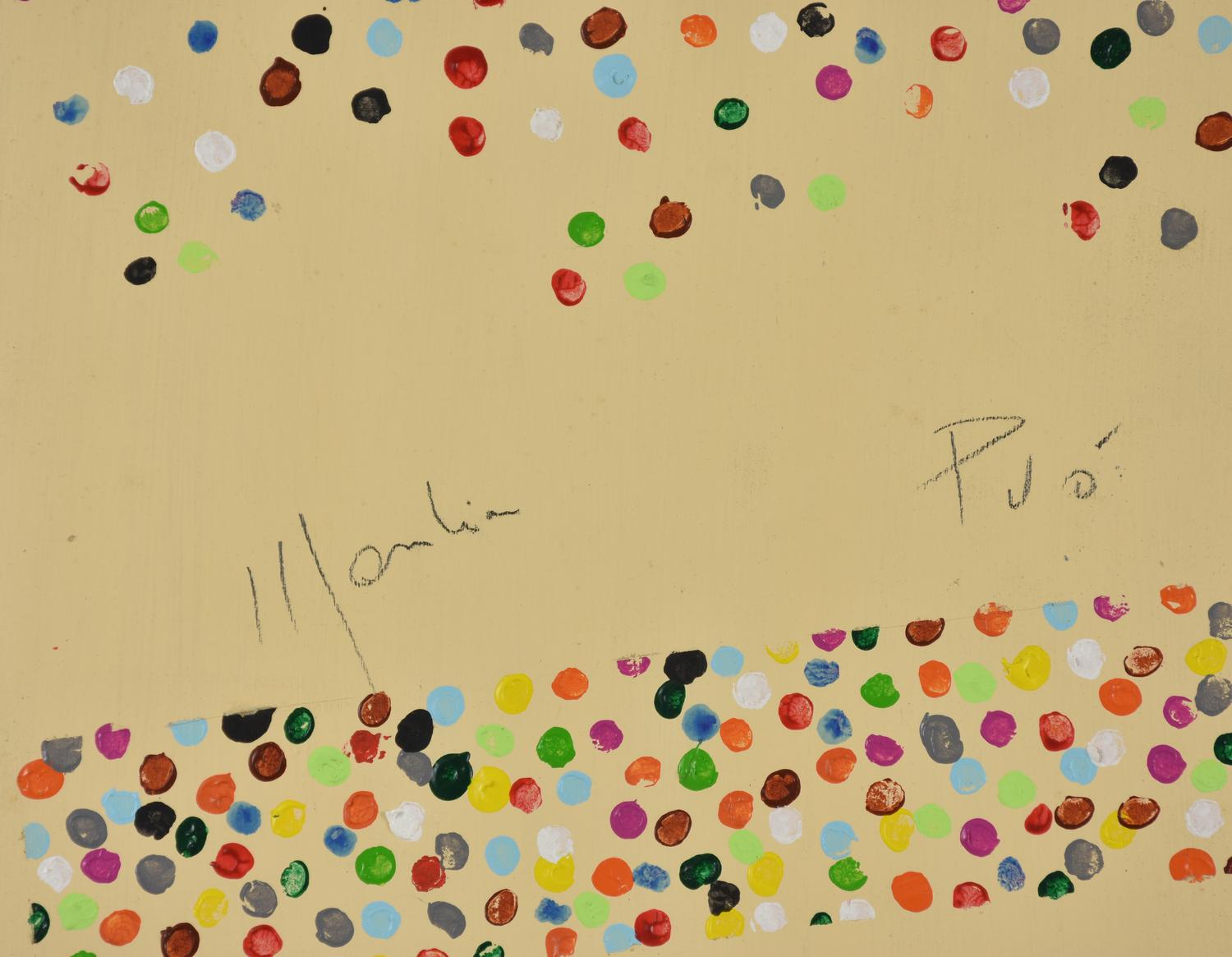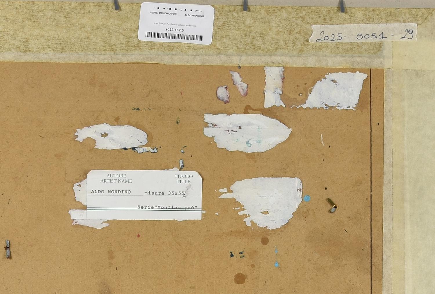 L'opera e' accompagnata da Autentica a cura dell'Archivio Aldo Mondino, con n. 20090221113056, con firma di Antonio Mondino data 02/03/2009