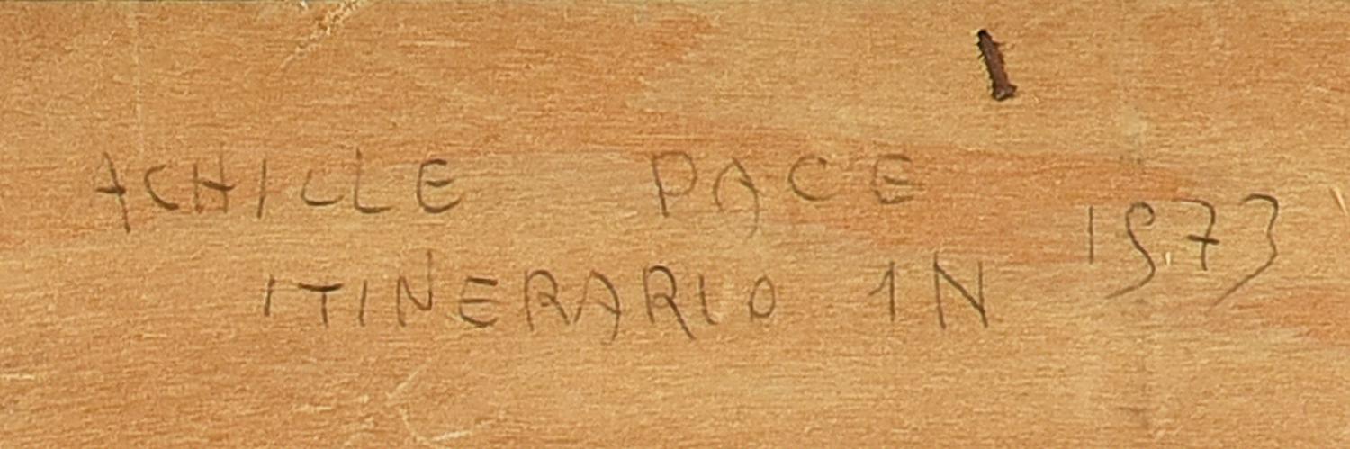 Achille Pace (1923) ITINERARIO 1N, 1973 tecnica mista su tela, cm 25x35 firma...