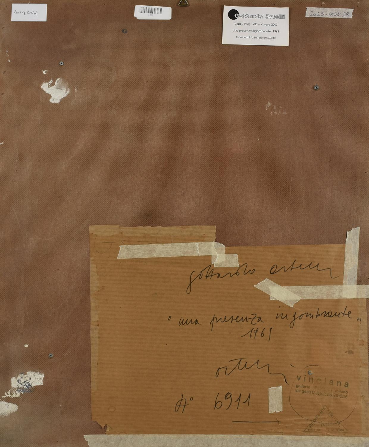 Gottardo Ortelli UNA PRESENZA INGOMBRANTE, 1961 tecnica mista su tela, cm...