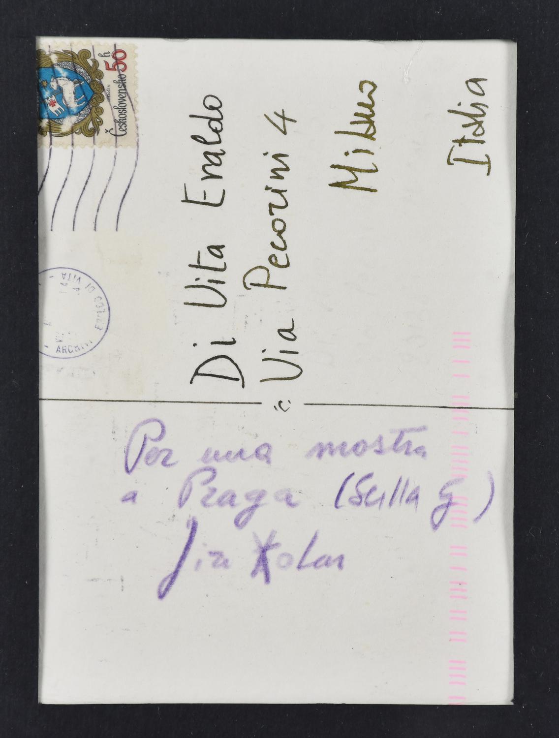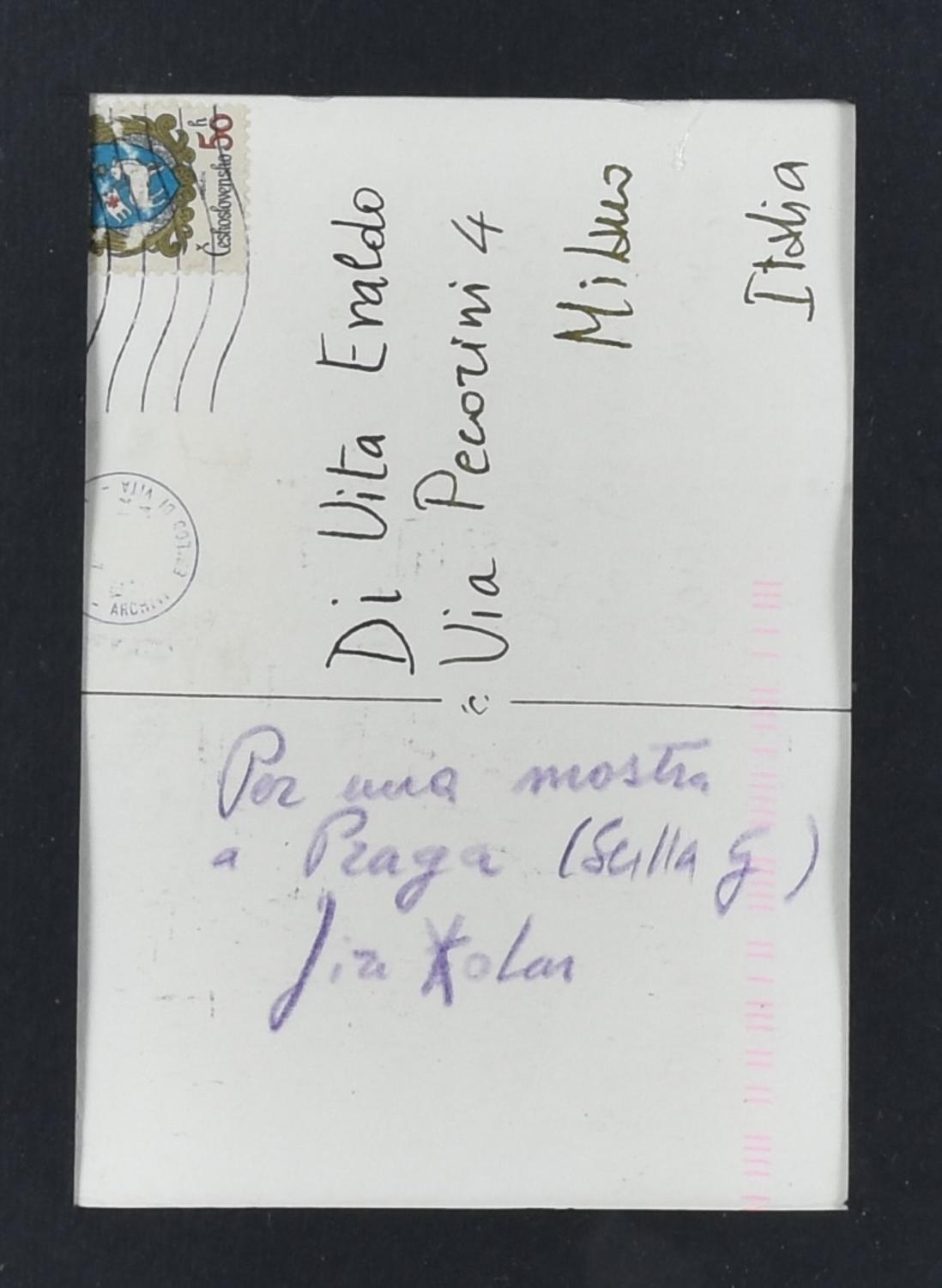 sul retro: firma, dedica ad personam edf iscritto dall'Autore 'Per una mostra a Praga Scilla G'